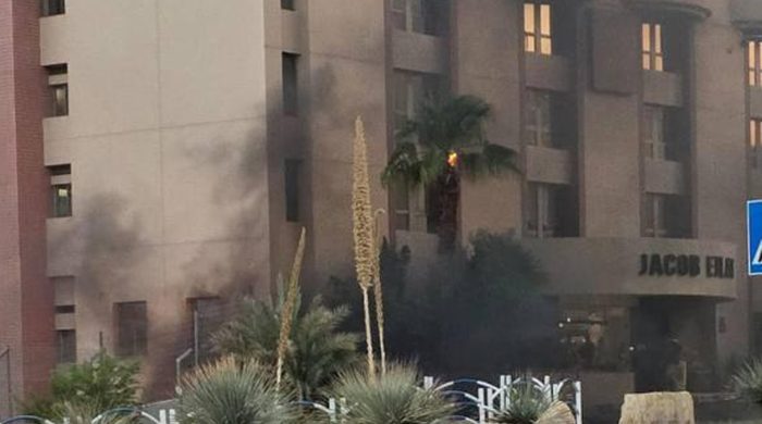 ইসরায়েলের ইলাত শহরের একটি হোটেলের সামনে ড্রোন হামলার ঘটনা ঘটেছে। বৃহস্পতিবার (১৮ সেপ্টেম্বর) স্থানীয় সময় বিকেলে ড্রোনটি হোটেলের প্রবেশদ্বারে এসে পড়ে। ঘটনাস্থলে দ্রুত পৌঁছে যায় ইসরায়েলি নিরাপত্তা বাহিনী ও স্বাস্থ্যকর্মীরা।