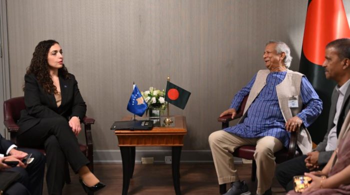 কসোভোর প্রেসিডেন্ট ভিওসা ওসমানি বুধবার নিউইয়র্কে জাতিসংঘ সাধারণ পরিষদের অধিবেশনের ফাঁকে প্রধান উপদেষ্টা অধ্যাপক মুহাম্মদ ইউনূসের সঙ্গে বৈঠক করেছেন। নিউইয়র্কের একটি হোটেলে অনুষ্ঠিত এ বৈঠকে অভিবাসন, বাণিজ্য এবং পারস্পরিক বাণিজ্যিক সহযোগিতা
