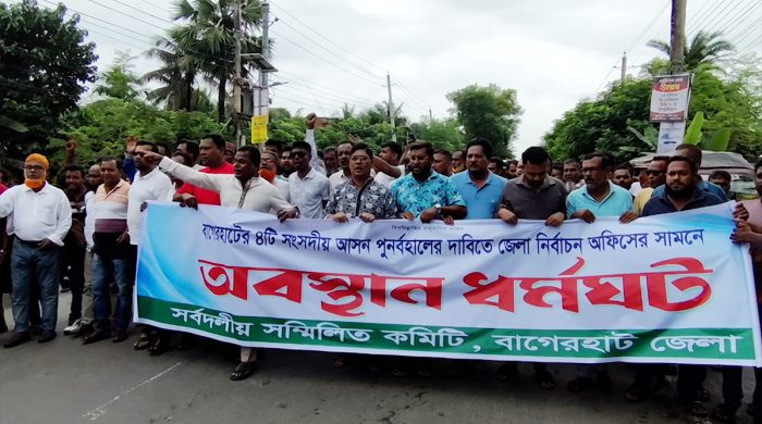 বাগেরহাটে ৪টি সংসদীয় আসন পুনর্বহালের দাবিতে জেলা নির্বাচন কার্যালয়ের সামনে অবস্থান কর্মসূচি পালন করছে ‘সর্বদলীয় সম্মিলিত কমিটি’। আজ মঙ্গলবার (১৬ সেপ্টেম্বর) সকাল দশটার দিকে শুরু হওয়া কর্মসূচি চলবে দুপুর একটা পর্যন্ত।